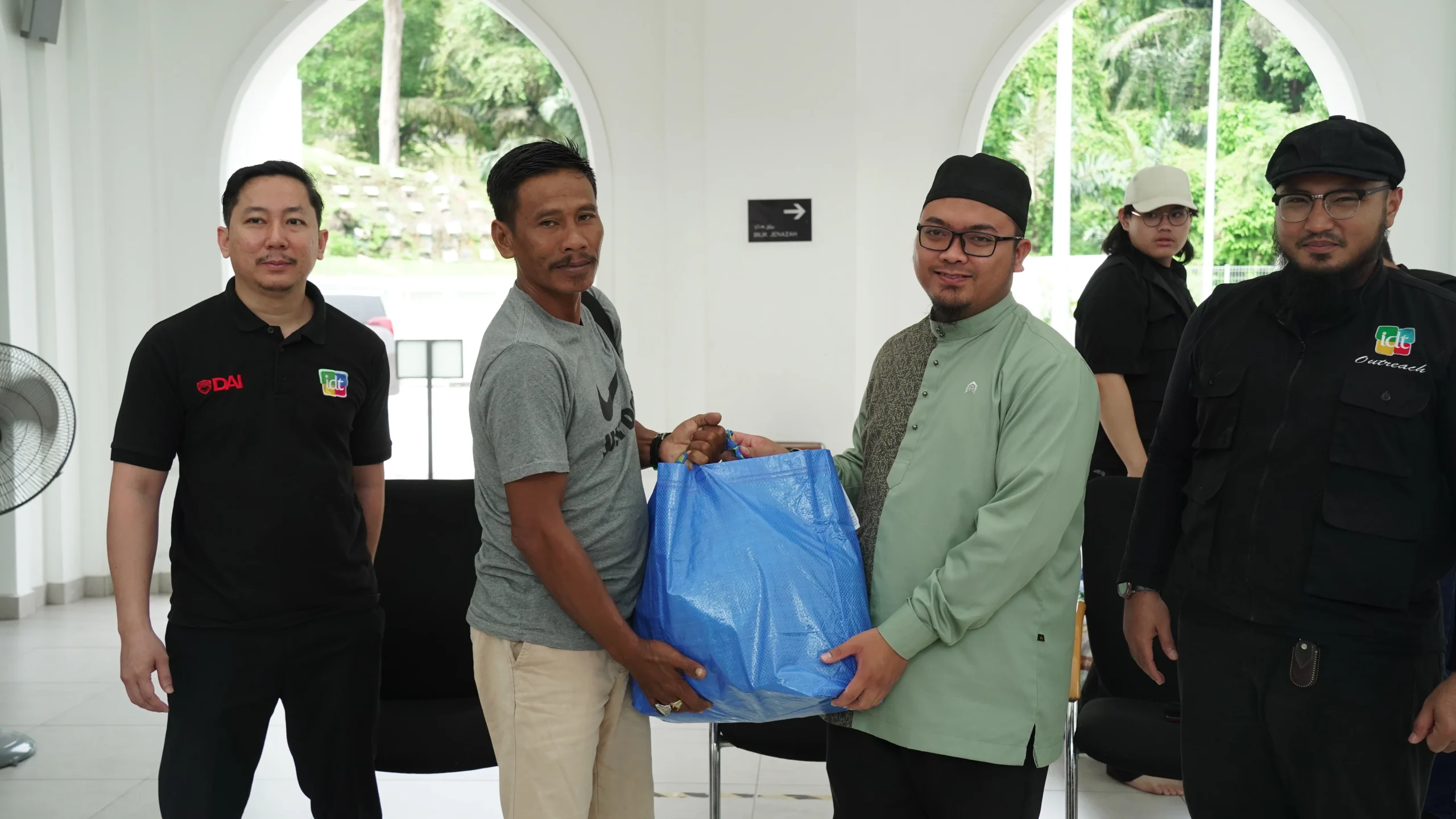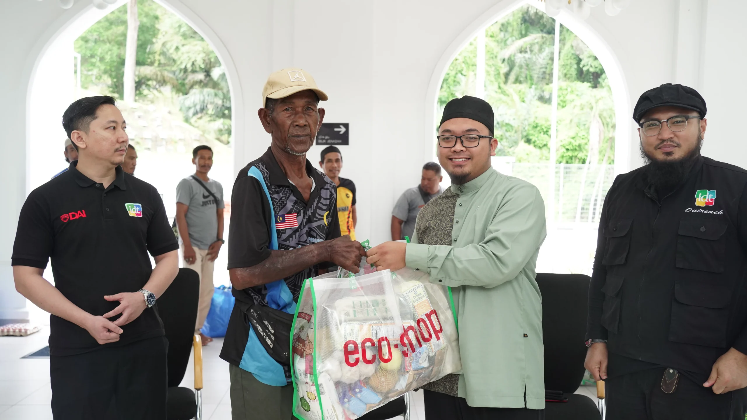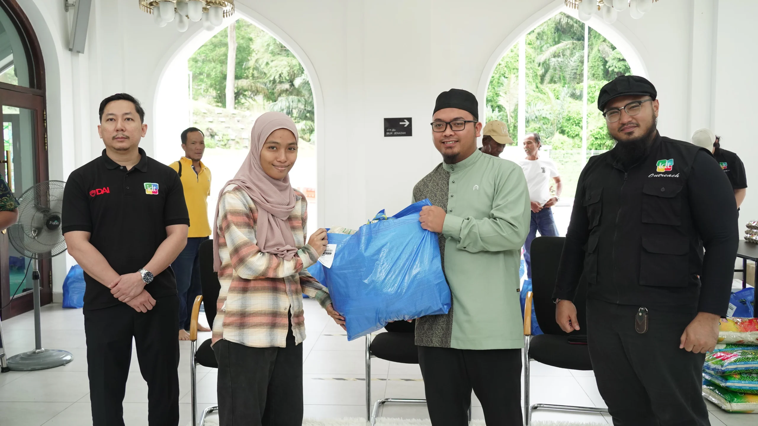 The distribution began at Masjid Raja Lumu at 11:00 am. Representatives from IDWA and IDT included Brother Naim, President of IDWA and General Manager of IDT, Brother Zakir, Treasurer of IDWA and HR and Finance IDT, and five other IDT staff. A total of 16 families received their food packs. The session was welcomed by Ustaz Luqman Hakim, Imam Pertama Masjid Raja Lumu, followed by a short remark from Brother Naim representing IDT. The morning session ended with the distribution of support by Brother Naim, representing IDWA and IDT, followed by a group photo involving all.