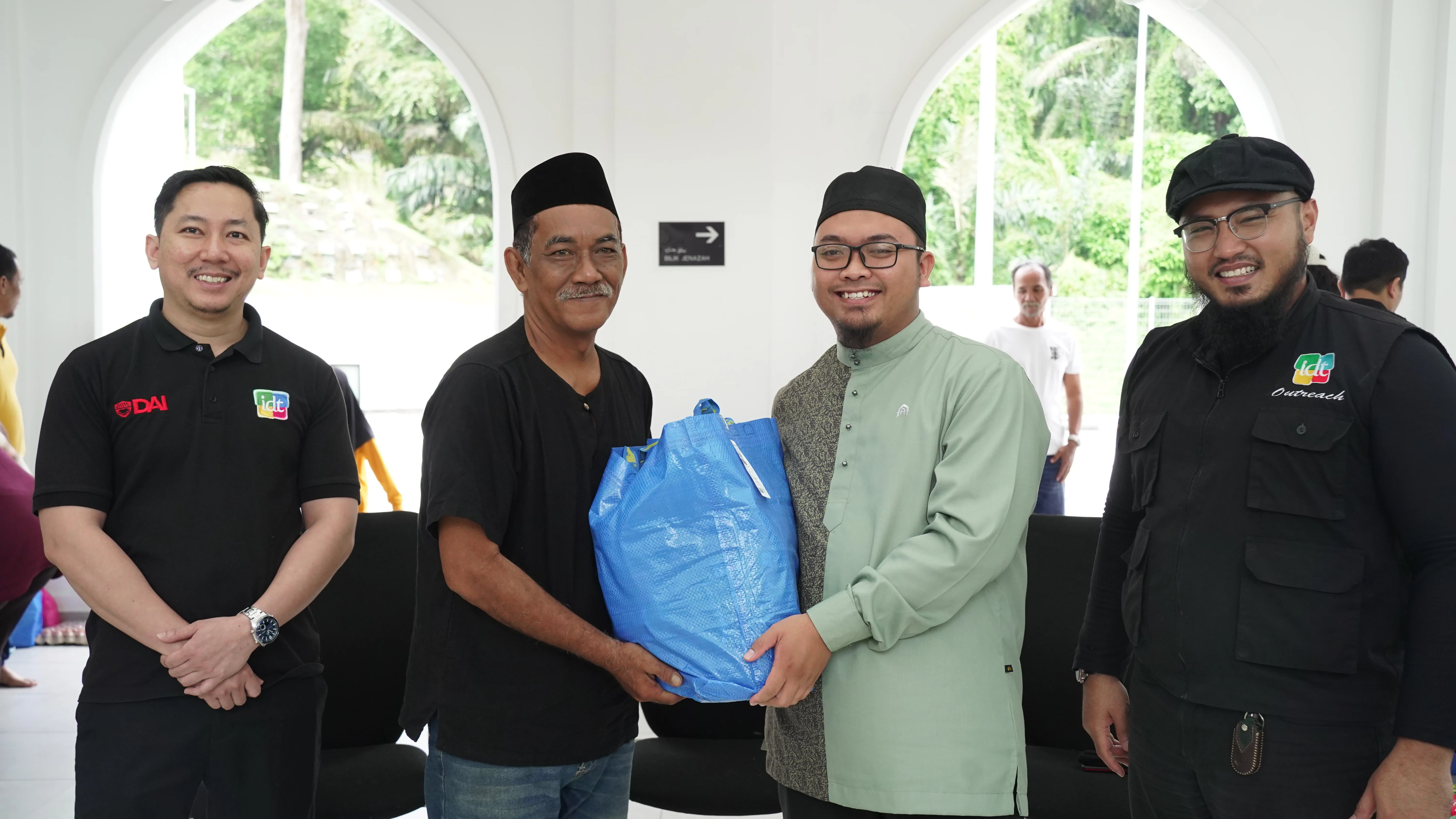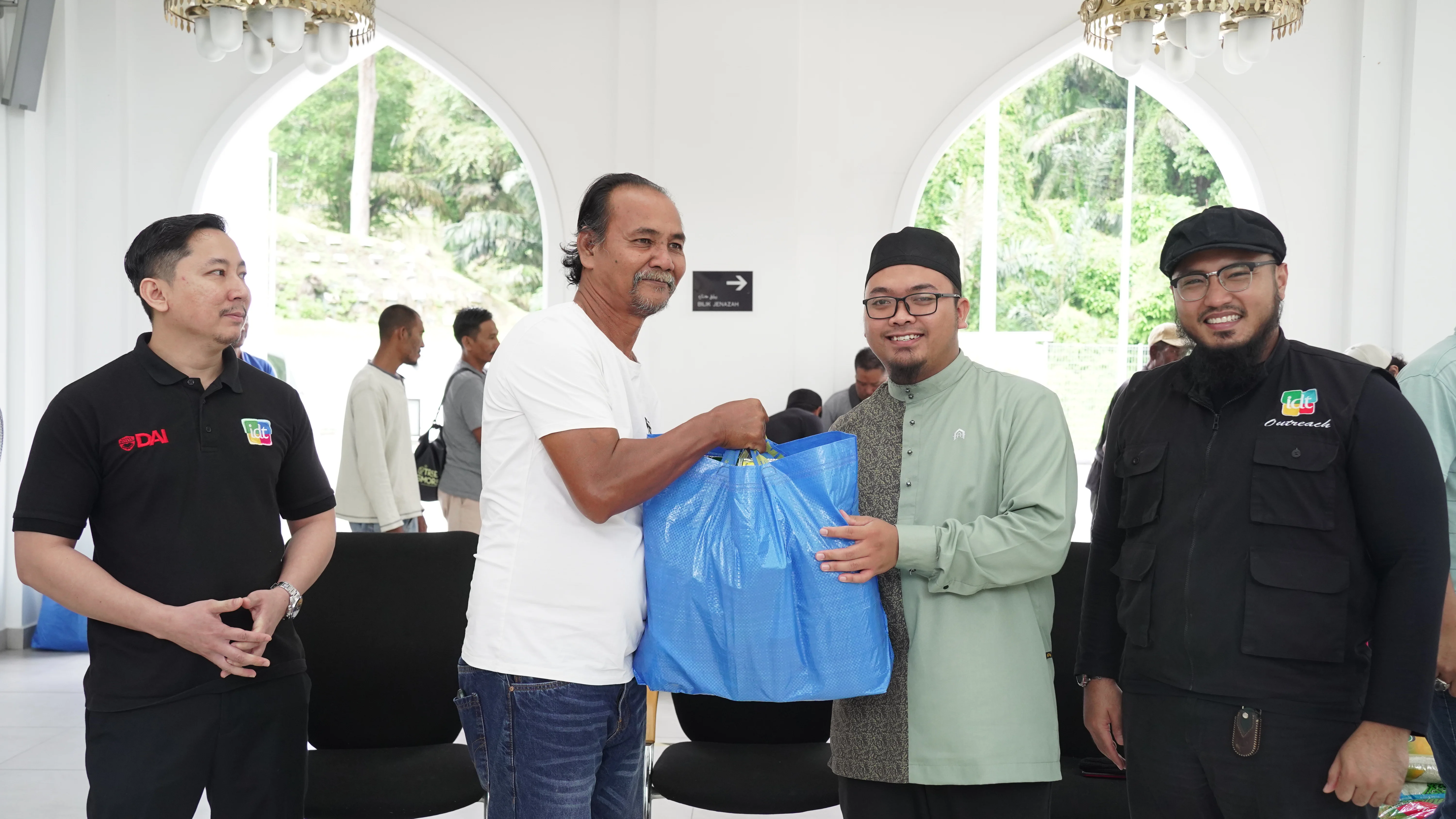The distribution began at Masjid Raja Lumu at 11:00 am. Representatives from IDWA and IDT included Brother Naim, President of IDWA and General Manager of IDT, Brother Zakir, Treasurer of IDWA and HR and Finance IDT, and five other IDT staff. A total of 16 families received their food packs. The session was welcomed by Ustaz Luqman Hakim, Imam Pertama Masjid Raja Lumu, followed by a short remark from Brother Naim representing IDT. The morning session ended with the distribution of support by Brother Naim, representing IDWA and IDT, followed by a group photo involving all.