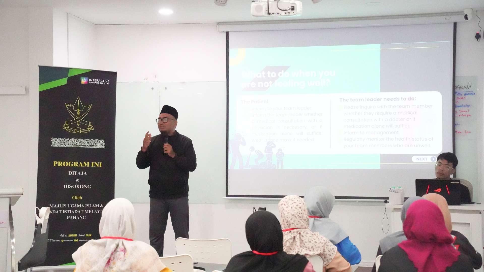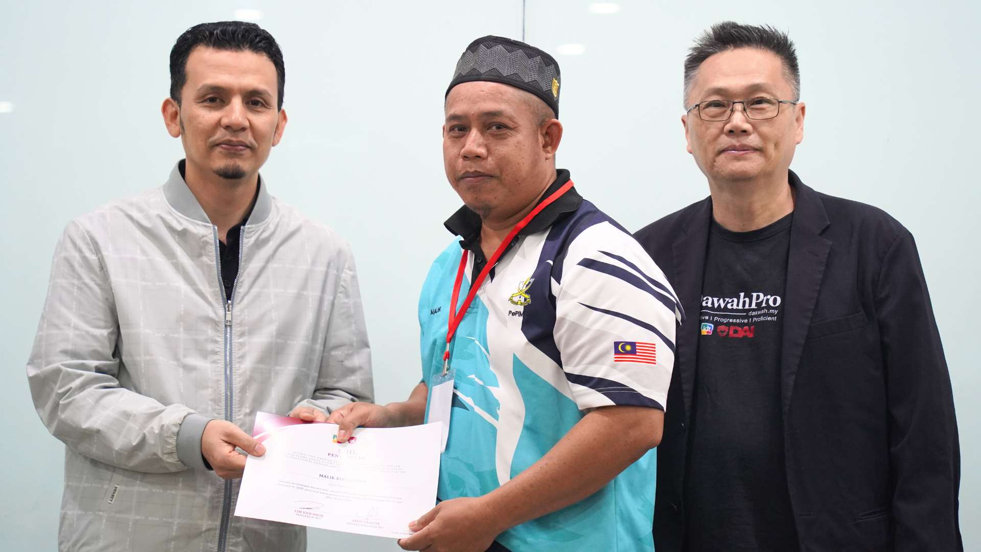 A highlight of the programme was a group presentation session, where participants demonstrated creativity, teamwork, and enthusiasm. Certificates were presented at the closing ceremony, which was attended by Tuan Haji Mohd Ali Bin Mat Dasir, Pengarah Bahagian Pengurusan dan Pembangunan Islam, and Brother Chris Lim Cheng Wei, Penolong Pegawai Hal Ehwal Islam Unit Pembangunan Modal Insan Bahagian Pengurusan Dan Pembangunan Islam. All participants received certificates of completion, and Nurul Aziana binti Bidi was additionally recognised as Best Student, earning a special certificate for her outstanding performance with a score of 97.1 percent.