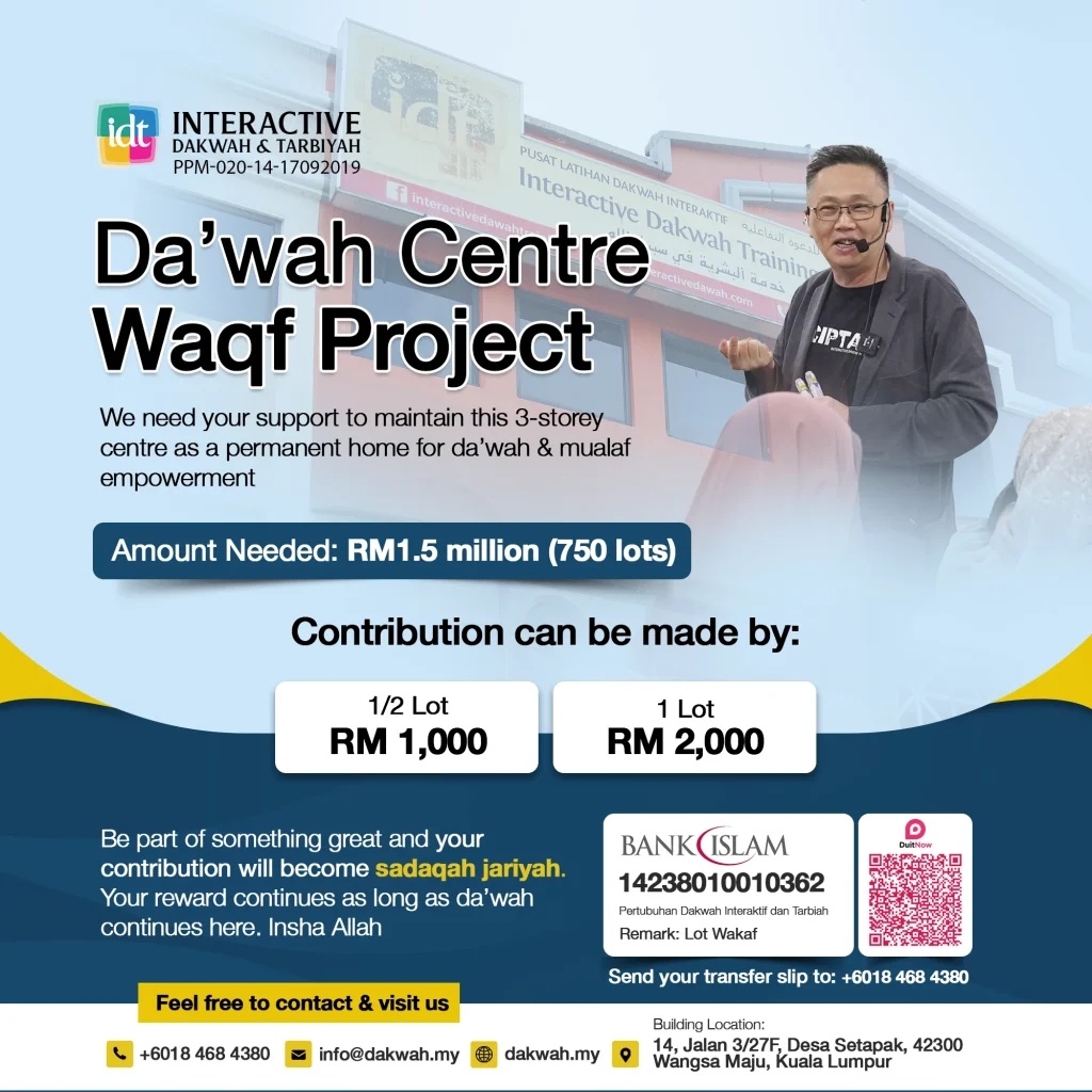 Help establish a permanent Waqf Da’wah Centre supporting education, new Muslims, and continuous da’wah efforts.