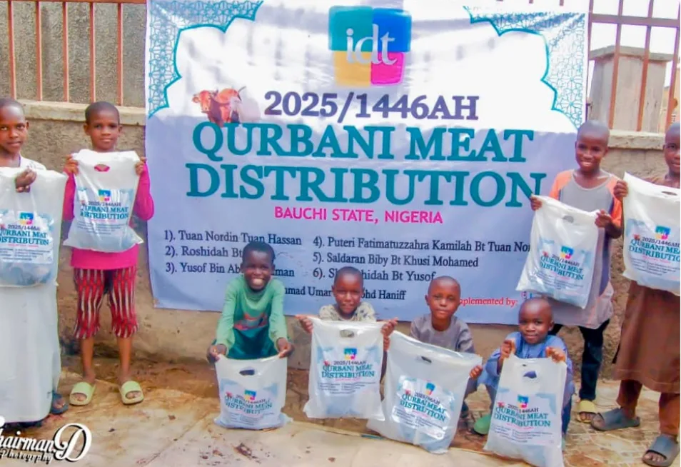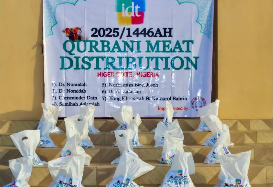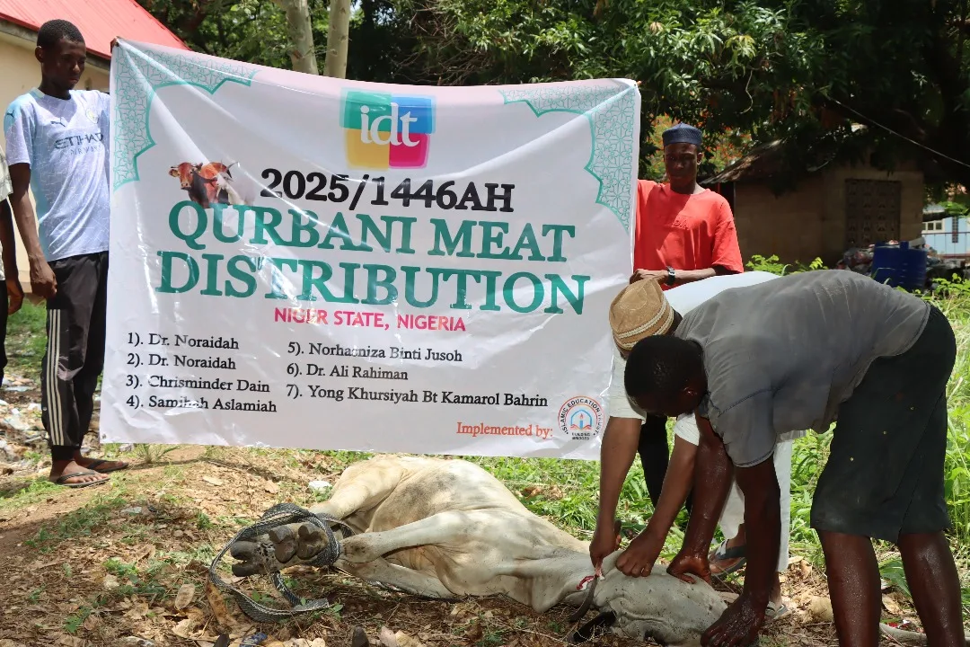 Interactive Dakwah & Tarbiyah Association (IDT) Malaysia is pleased to announce a blessed collaboration with Islamic Education Trust (IET) Nigeria in carrying out the sacrifice of sacrifice for our Muslim brothers and sisters in Nigeria. May we all continue to be a part of love and affection across national borders, as well as a tangible proof of Islamic brotherhood. May this sacrificed meat bring happiness and blessings to those who receive it. Highest appreciation and gratitude to the esteemed participants.